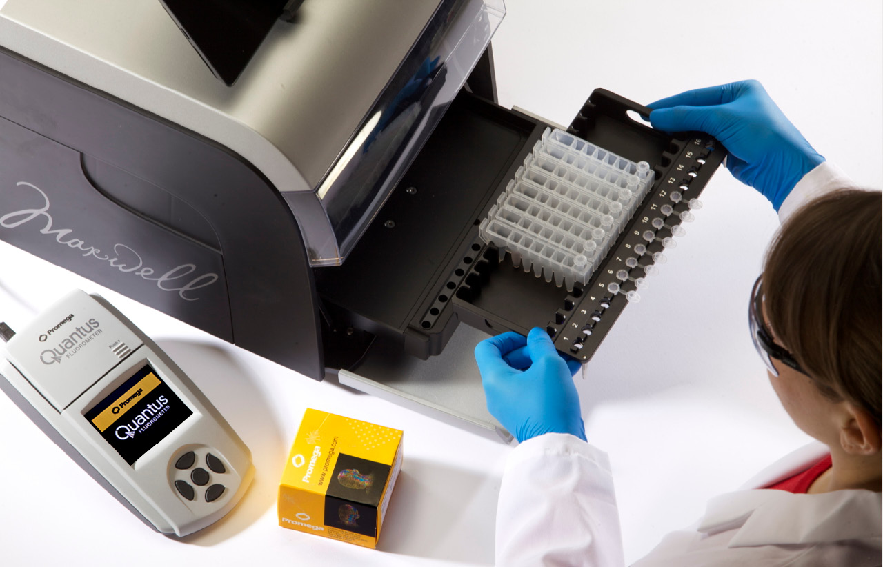 Following nucleic acid purification with the Maxwell® RSC, you can quickly and easily quantitate your sample using the included Quantus™ Fluorometer.
